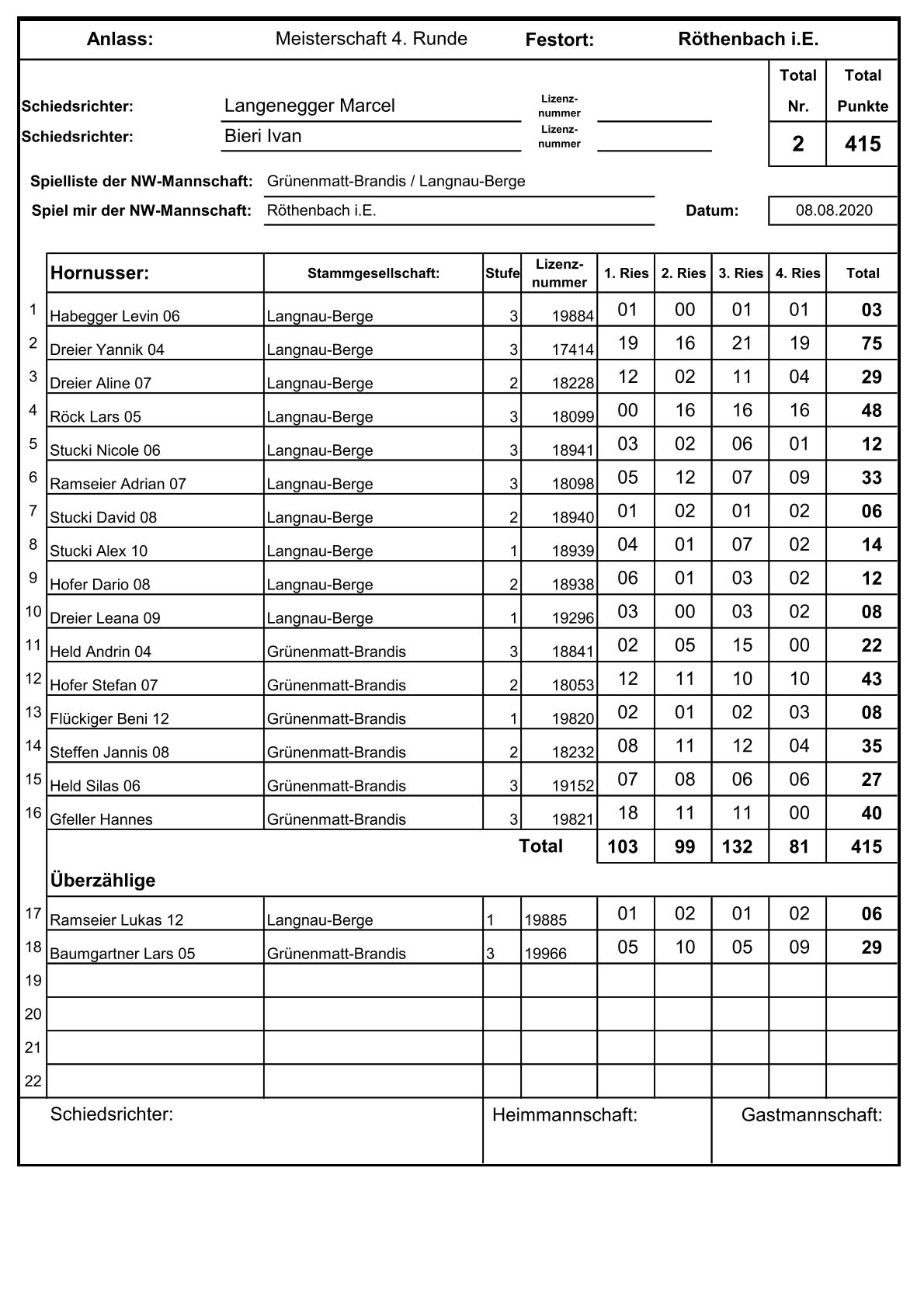 Das Spiel konnte bei diesen heissen Temperaturen dank einer starken Leistung im Ries gewonnen werden, gingen unseren Jungs und Mädels nur 2 Nousse durch. Als Belohnung wartete die Abkühlung im Bach direkt beim Ries. Heia Gielä u Modis!